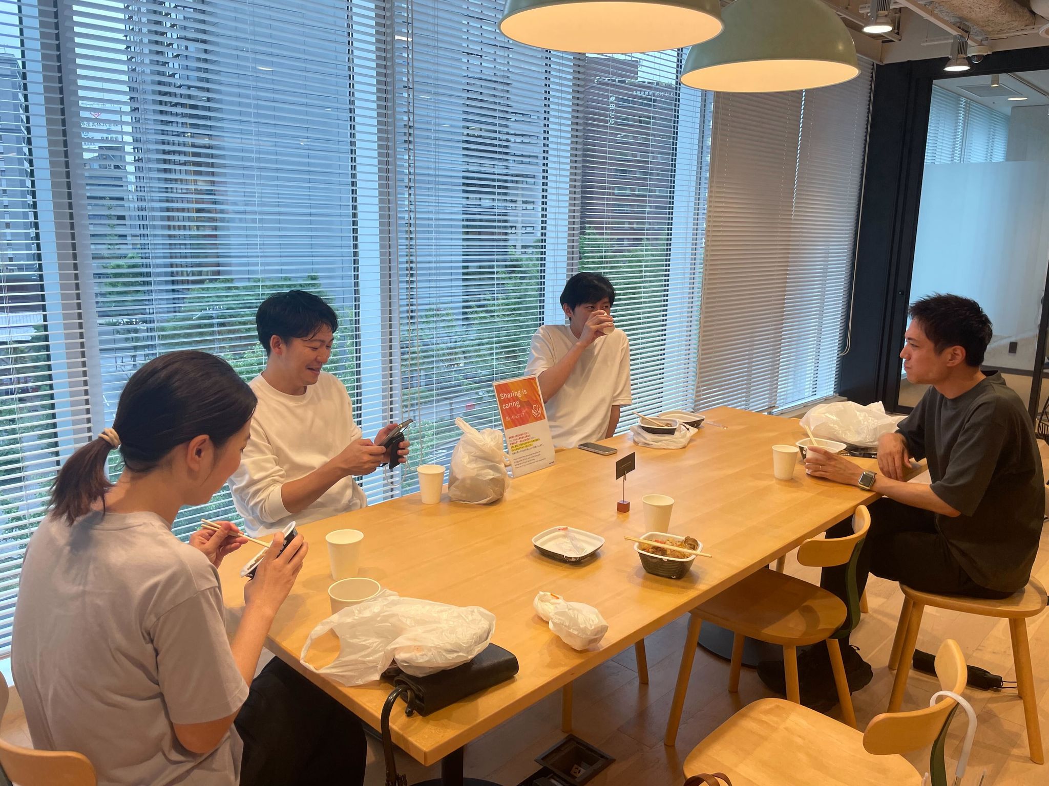 休日にFesやBBQに行ったり、みんなでランチしたり、仕事終わりにボードゲームをしたり、そんな距離感の社風です。外部イベントは職種関わらず全員で作り上げ、お祝い事は全員で祝います。「組織もプロダクト」として社員全員で会社を創り上げる風土です。
