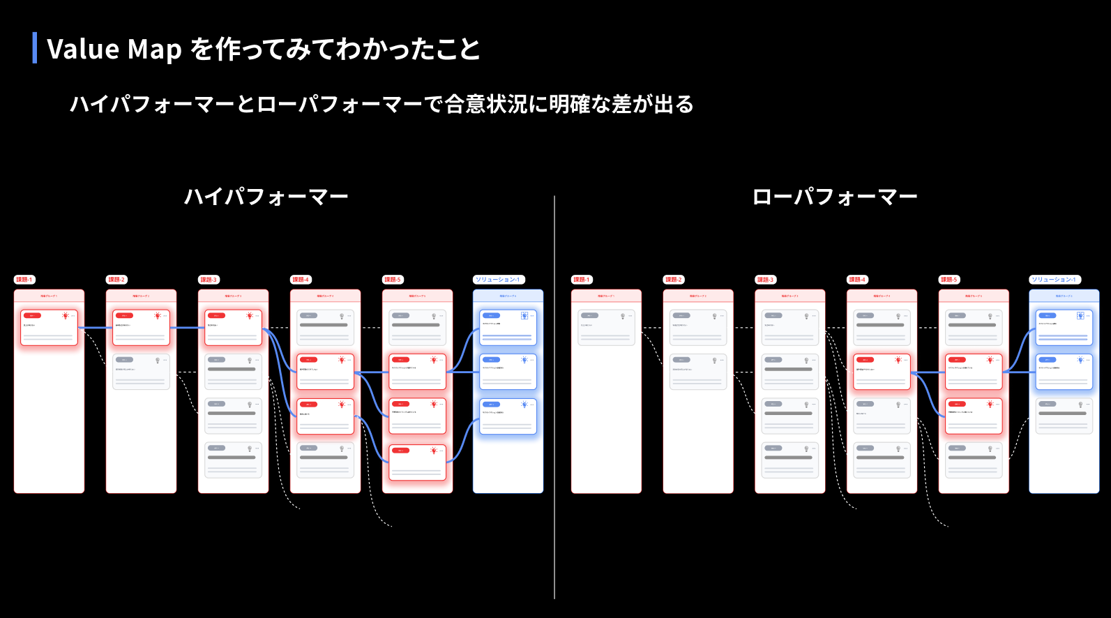 構造を比較することで、ハイパフォーマーとローパフォーマーの差分を、パターンで抽出することが可能となった